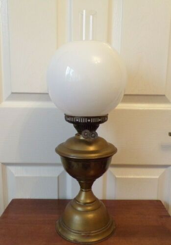 Title (ebay affiliate link): A vintage brass Duplex oil lamp twin burner working order & white glass shade