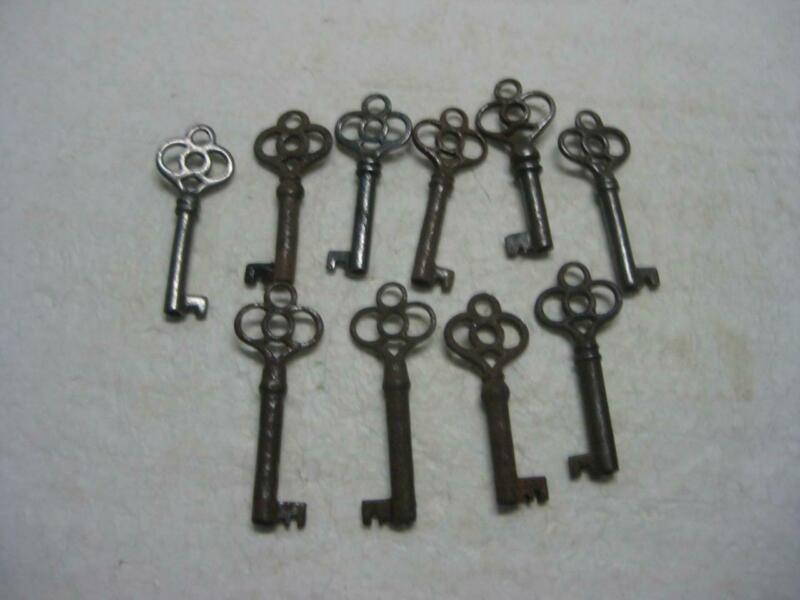 10 Antique Hollow Barrel Furniture Cabinet Skeleton Keys