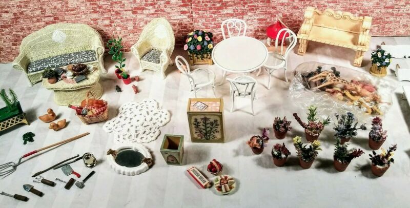 Dollhouse Miniature garden lot, patio furniture 1:12 scale outdoor furniture