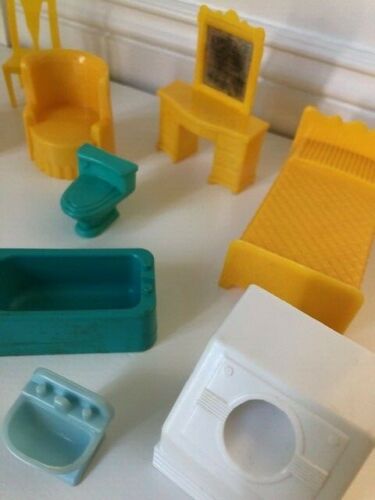 Title (ebay affiliate link): Mixed Lot Renwal Marx vintage dollhouse bedroom bathroom furniture EUC