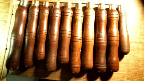 LOT CH1 10 OAK VINT. WOOD CHISEL OR FILE HANDLES COPPER BANDS TANG HOME MADE