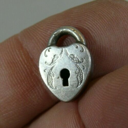 Title (ebay affiliate link): Vintage Older Engraved Feather Leaves Sterling Puffy Heart Charm #2/30 Padlock