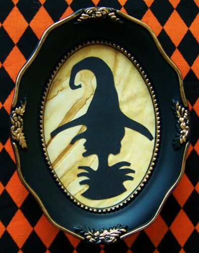 Title (ebay affiliate link): Miniature Halloween Witch Framed Silhouette Primitive Party Decor Wall Mantel