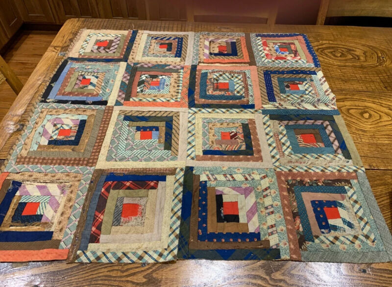 Title (ebay affiliate link): 4 Pc Early Log Cabin Quilt PCs Great Table Mat Stack Or Basket & Bowl Textiles