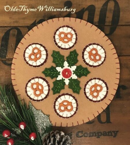 Primitive Stitchery CHRISTMAS Pretzels & Holly Penny Rug ~ WINTER Candle Mat