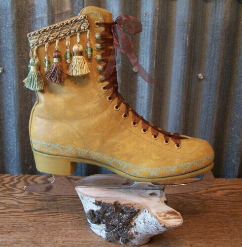 Title (ebay affiliate link): OOAK Hand Painted Vtg Ice Skate Christmas Decor/Camel Turquoise & Brown Tassels