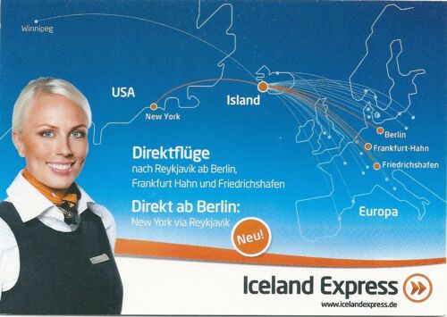 Title (ebay affiliate link): Iceland Express airline issue postcard Stewardess + route map