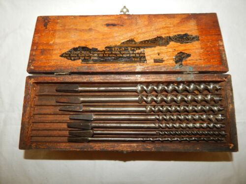 Title (ebay affiliate link): ANTIQUE Russell Jennings Auger Bits in Original WOOD BOX > LOT OF 14 AUGER BITS