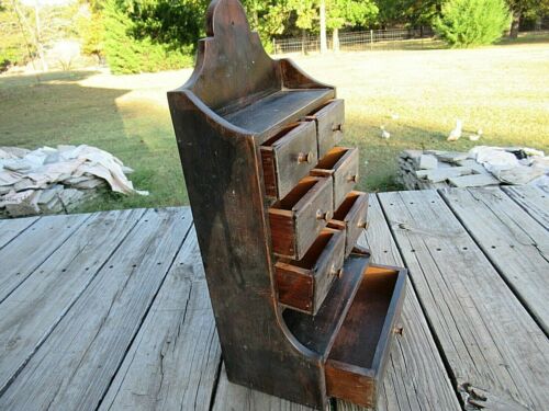 Title (ebay affiliate link): ANTIQUE VINTAGE PRIMITIVE WOOD SPICE CHEST BOX APOTHECARY CABINET FOLK ART