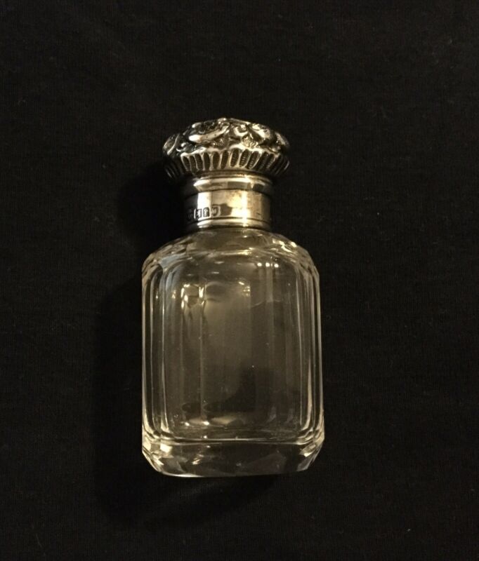 Title (ebay affiliate link): ANTIQUE CUT GLASS PERFUME/SPIRIT/COLOGNE/SCENT BOTTLE WITH STERLING REPOUSSE LID