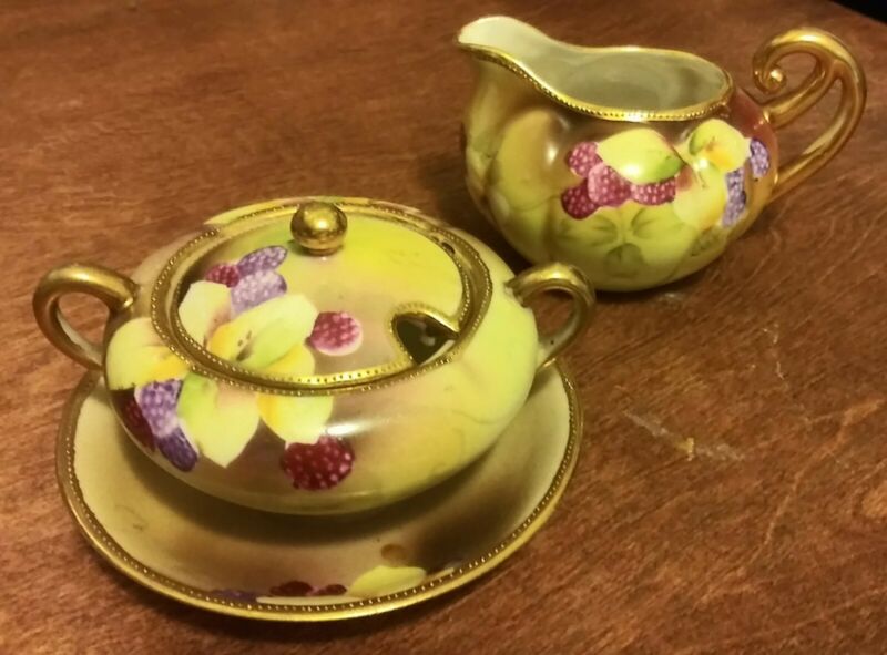 Title (ebay affiliate link): Antique NIPPON Raspberry Creamer and Sugar Bowl w/ Lid HP Handpainted Japan