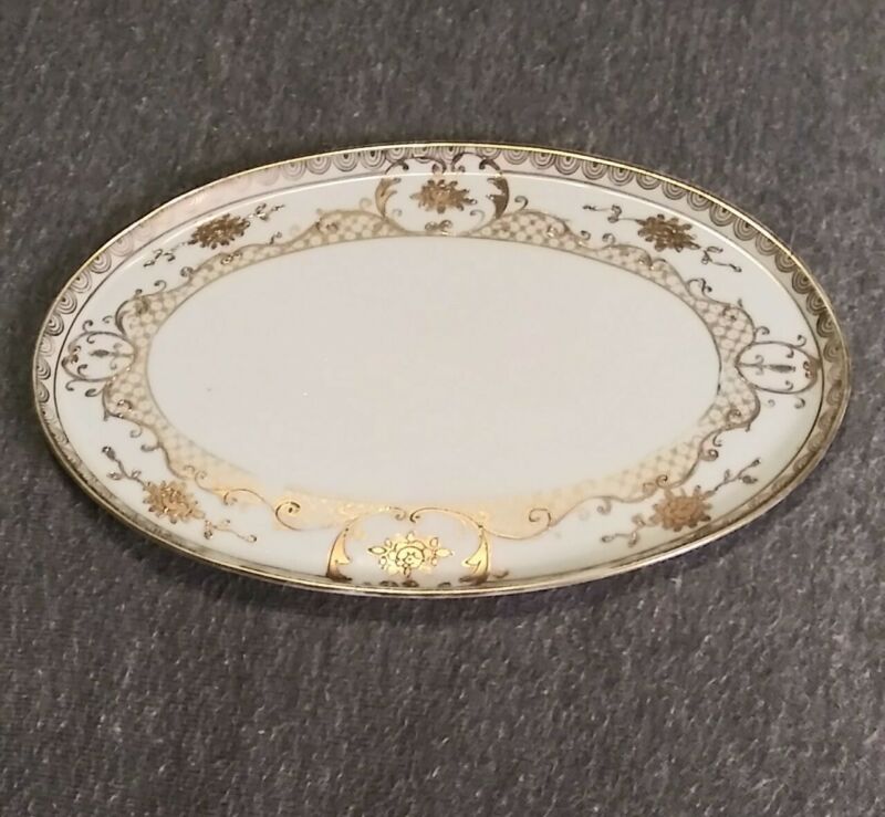Antique Japanese NIPPON Oval Dresser Tray White Porcelain 8 x 5 1/2" Across