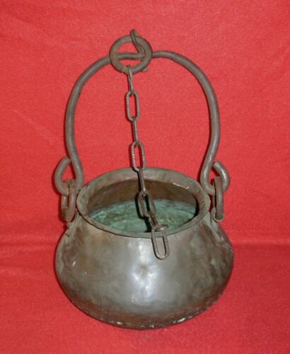 Title (ebay affiliate link): Antique Hammered Copper Kettle Flower Pot w Chain For Hanging Outside or In