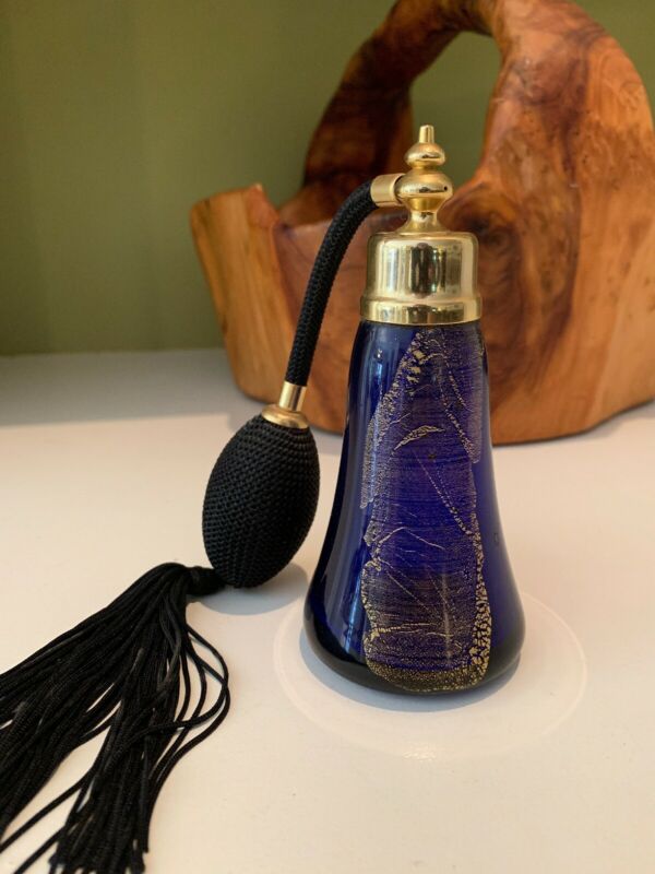 Title (ebay affiliate link): Antique PERFUME ATOMIZER Bottle Cobalt Blue Gold Leaf VTG Lead CRYSTAL GLASS