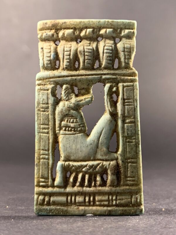 Title (ebay affiliate link): DETAILED ANCIENT EGYPTIAN FAIENCE SEATED ANUBIS HIEROGLYPHS CIRCA 990-332BC