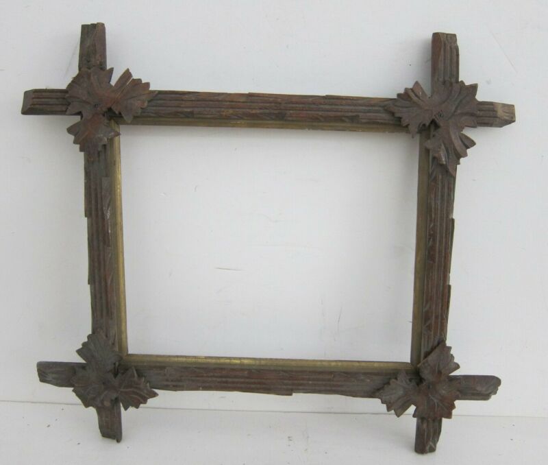 Antique 14x16 Tramp Art Adirondack Criss Cross Wood Picture Frame Fits 8x10 Art