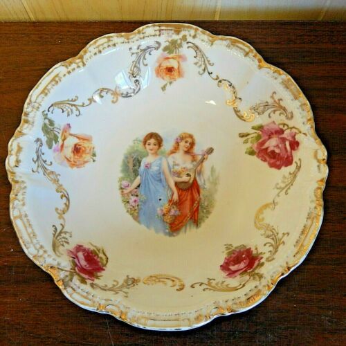 Antique/Vintage 8.25" DM Bavarian Porcelain Bowl w/ Women in Classical Dress