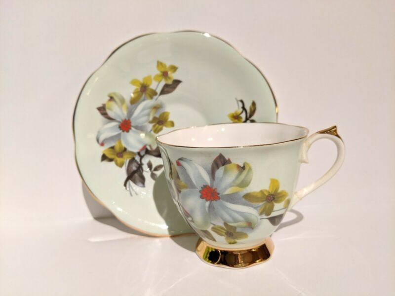 ENGLISH TEA CUP SAUCER DOGWOOD BLOSSOM BONE CHINA MADE IN ENGLAND