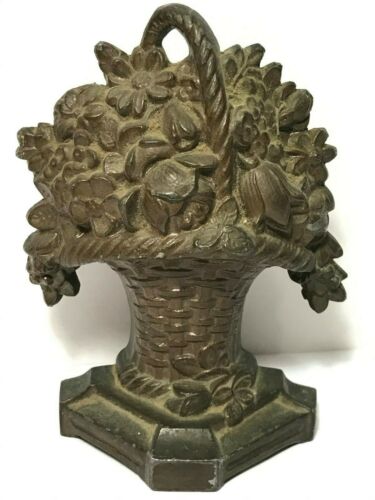 Title (ebay affiliate link): Antique Original Bronze Finished Hubley Cast Iron Flower Basket Doorstop 102