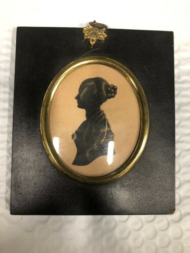Title (ebay affiliate link): Framed Miniature Silhouette Lady Bronzed Cut 1840''s Portrait Antique Folk Art UK