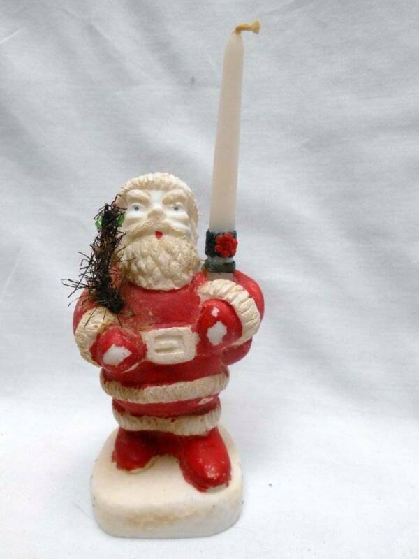 Old Antique SALT STONE Santa Figure with Weird TREE in his hand &a Candle
