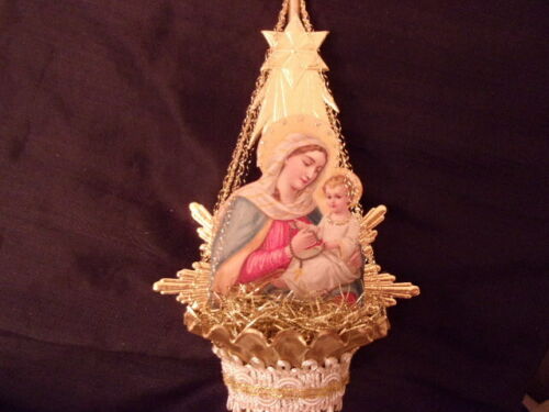Title (ebay affiliate link): Antique Look Christmas Ornament, MARY--JESUS SCRAP, Basket, Wire, Handmade