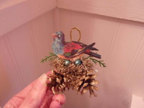 Antique Look Christmas Ornament, BIRD SCRAP, GLASS Eggs, Pine Cones, Handmade