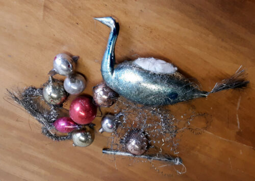 Title (ebay affiliate link): Antique Mercury GLASS LrgBlue BIRD 5"+ Wire Wrapped ORNAMENTs + Balls For Repair