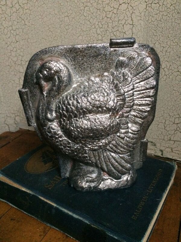 Title (ebay affiliate link): Primitive Antique Tin Style Turkey Silver Resin Chocolate Mold Rustic Halloween