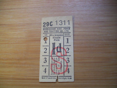 Train / Bus Bell Punch Ticket 1d Workmans Single Fare