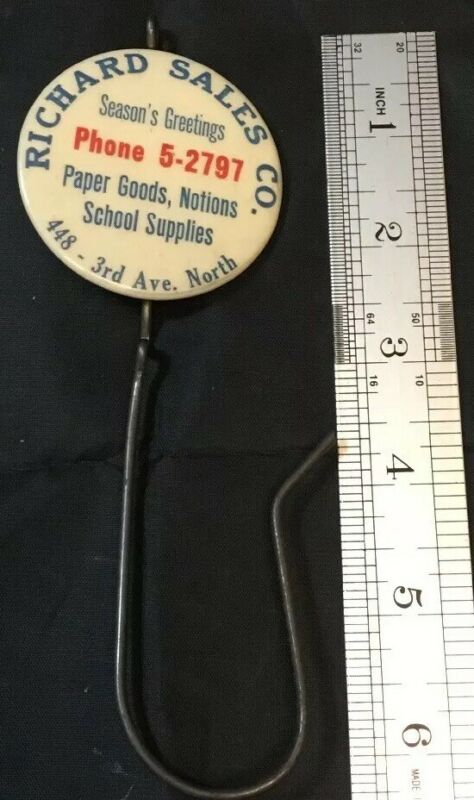 VINTAGE Celluloid Bill Or Receipt Hook Richard Sales Co Paper School Advertising