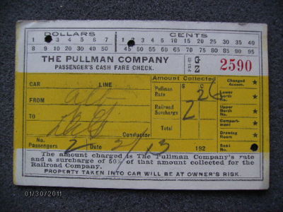 PULLMAN COMPANY RAILROAD 1920'S TICKET