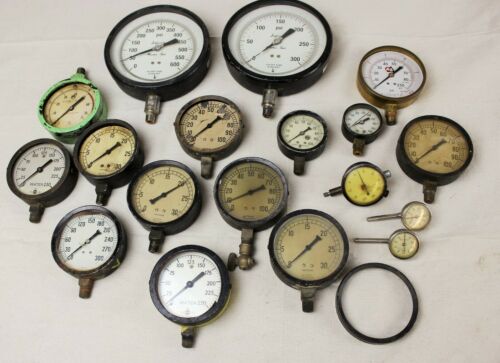 Steampunk Lot 18 Vintage Gauges ~ Pressure, Vacuum, Run Out 6-1/2" to 1-1/2" Dia