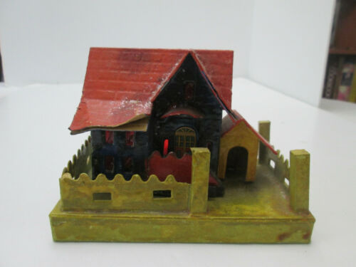 Vintage Japan Cardboard Putz Christmas Village House Light Cover w Fence 4499