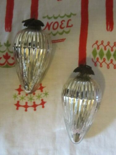 Title (ebay affiliate link): 2 Vintage SILVER color RIBBED GLASS KUGEL CHRISTMAS BALL ORNAMENTS German?
