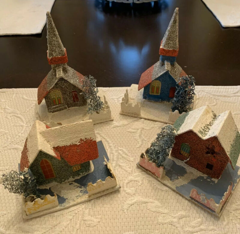 Title (ebay affiliate link): Vintage Antique Lot Of 4 Mica Putz Christmas Mica Glitter House Church JAPAN