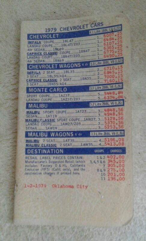 Title (ebay affiliate link): 1979 CHEVROLET CARS SALESMAN WAGON/MONTE CARLO/ MALIBU/ CAMARO/ NOVA/ MONZA/CORV