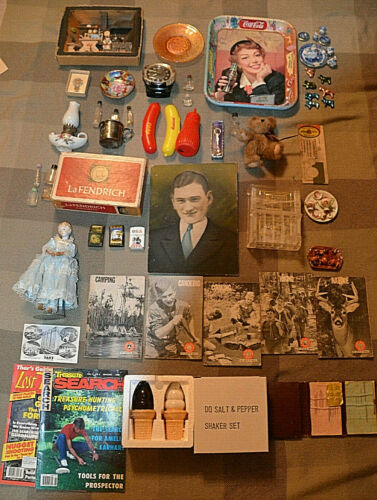 Title (ebay affiliate link): Vtg AnTiQue Cigar BoX JUNK DRAWER LOT Tea Set Clock bank coke Boy Scout oddSTUFF