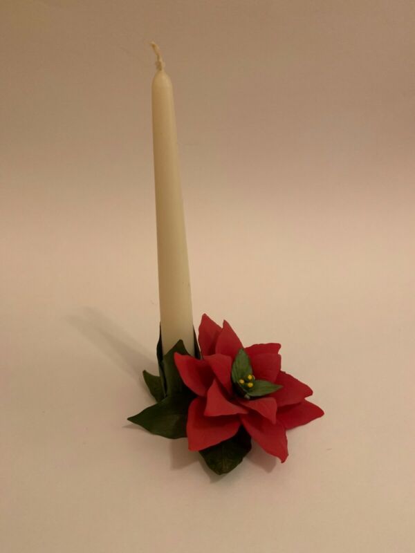 Title (ebay affiliate link): Capodimonte porcelain poinsetta candle holder with candlestick good condition