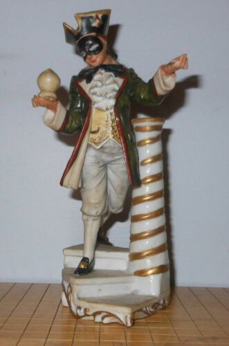 Title (ebay affiliate link): Vintage Capodimonte Porcelain Figurine Fancy Masked Man w/ Bank & Coins Preowned
