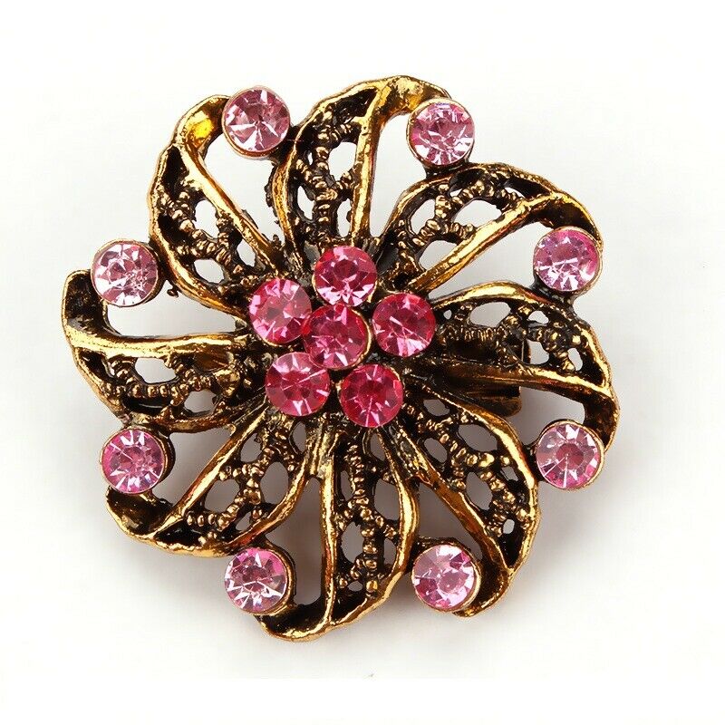 Pink Antique Round Fan Crystal Pin and Brooch