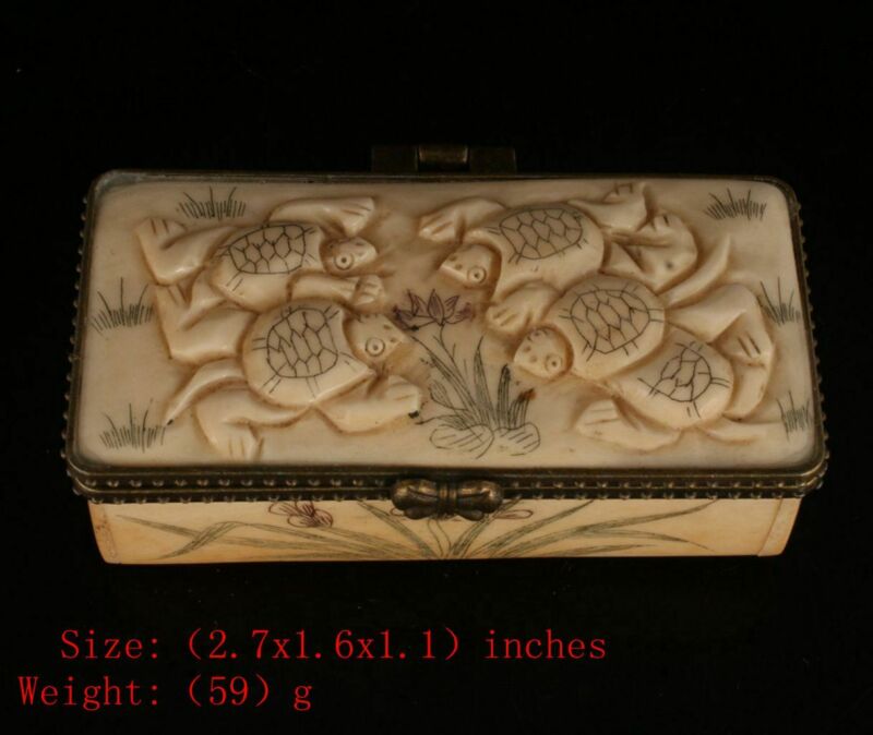 Title (ebay affiliate link): RARE CHINESE CATTLE BONE JEWELRY BOX STATUE HAND-CARVED MASCOT DECORATION