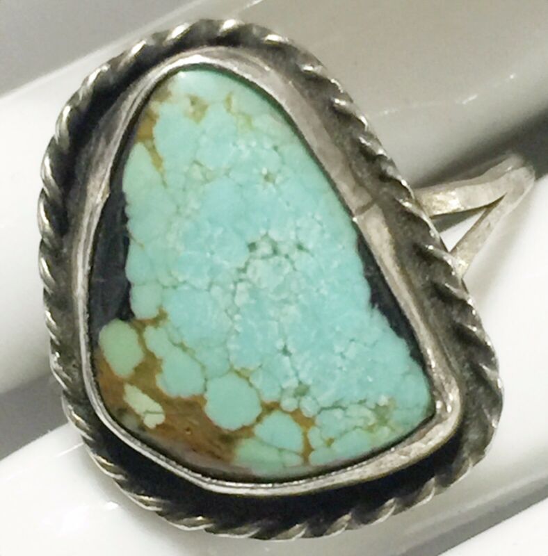 Title (ebay affiliate link): Antique Old Pawn Navajo Sterling Silver Bisbee Turquoise Rope Bezel Ring Size 10