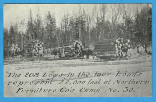 Title (ebay affiliate link): Sheboygan WI, Northern Furniture Co Logging Camp #30 Advertising Postcard 1908