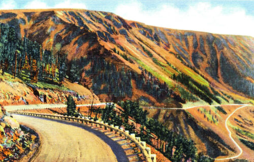 Title (ebay affiliate link): MT Montana Beartooth Hwy: "Climbing Great Switchbacks" Sanborn Linen Card