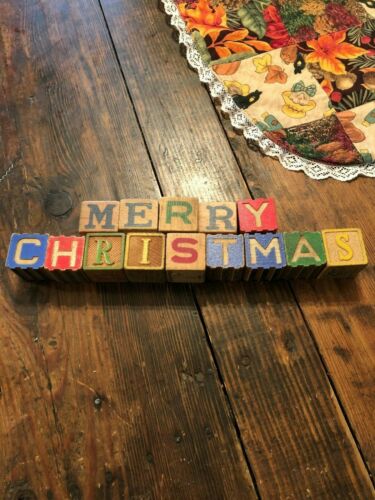 Title (ebay affiliate link): VINTAGE OLD FARMHOUSE ANTIQUE CHILD''S BLOCKS *MERRY CHRISTMAS* SHELF BENCH DECOR