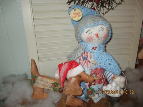 PrimiTive ChriSTMas SnoWMAn~DachSHUnd~FLanneL OveRCOAt~Dog FaBric~AdoRaBLE~BaLLS