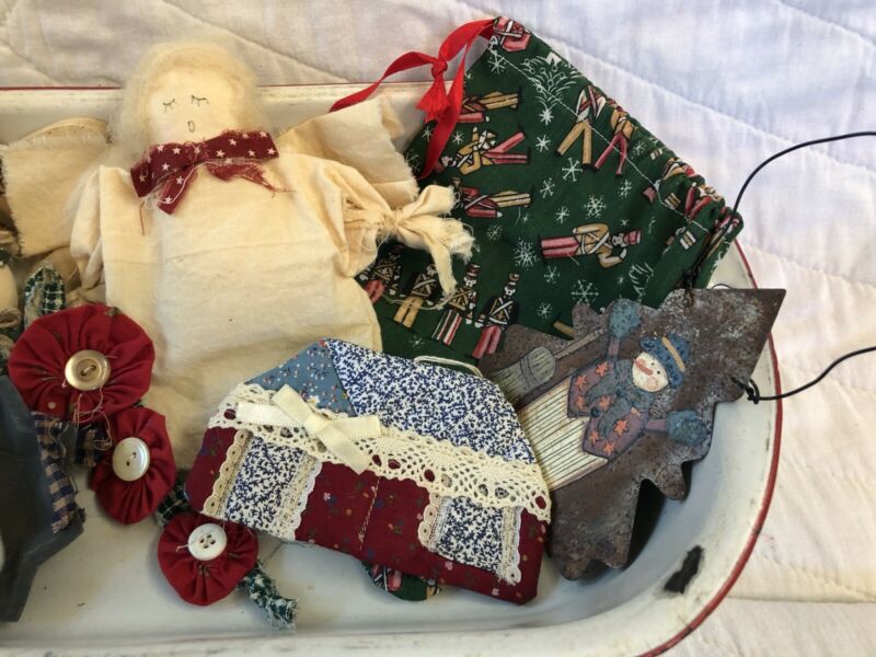 Title (ebay affiliate link): Gathering of 12 Christmas Ornaments~angels, snowman, Handmade, OOAK, Variety