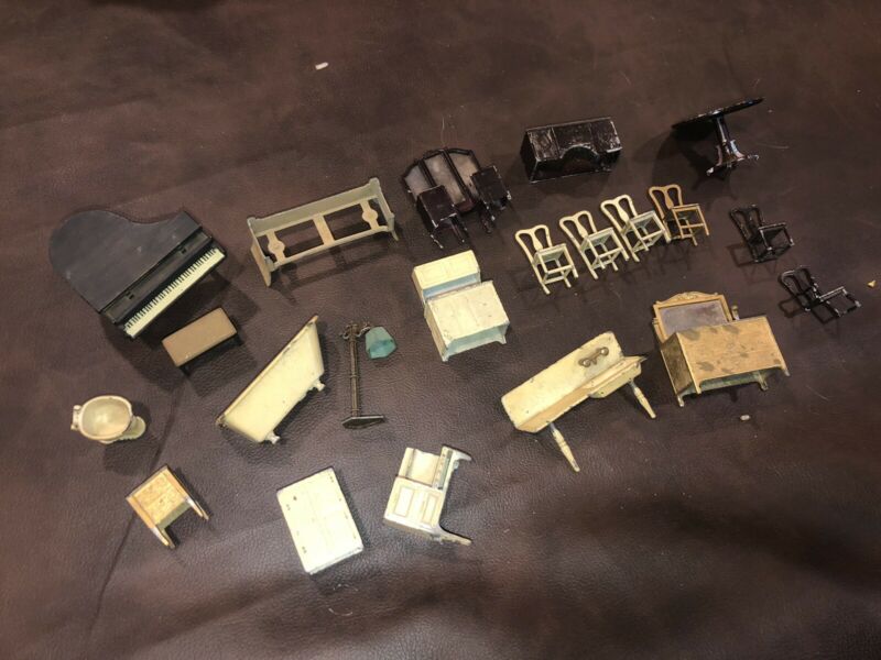 Vintage Tootsie Toy Metal Dollhouse Furniture Miniatures Large Lot