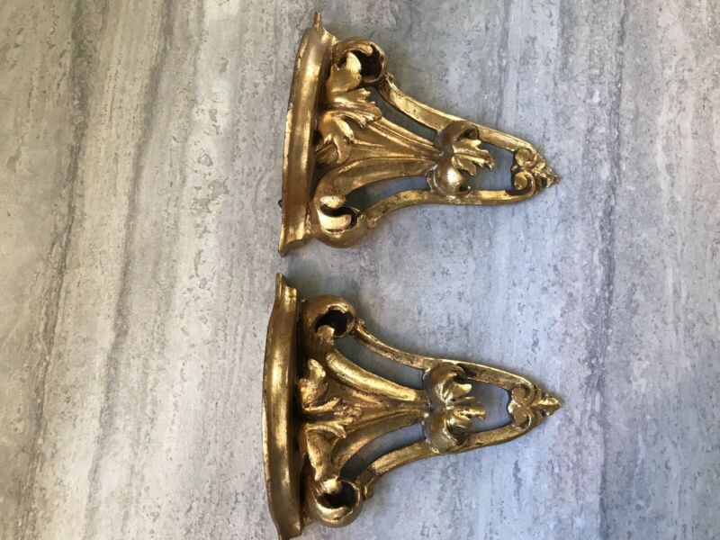 Title (ebay affiliate link): Vintage Italy Florentine Hanging Wall Shelf Sconces Gold Wood Ornate